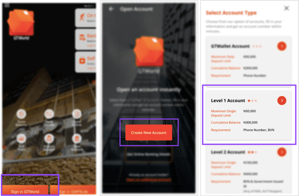 Now the questions are, which banks have handled this efficiently? How security conscious is the bank? Do these banks require BVNs for all types of accounts offered on their mobile apps? How soon do they comply with the BVN policy? That’s what we are about to find out, as it can greatly reduce the time spent in the onboarding process of a customer. The steps the customers take on the mobile applications will be displayed and a checklist is provided at the end of the analysis, in this section.