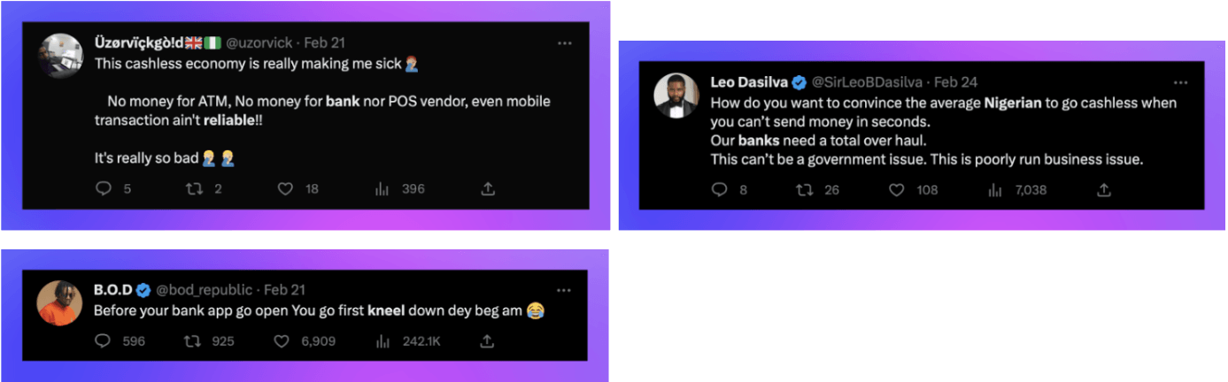 The situation took a nosedive after the deadline for exchanging the old naira notes passed. The already strained cashless economy faced even more challenges with the reduced circulation of cash. Many people had to rely on digital payments for essential everyday needs, but unfortunately, the system crashed. Frustrated customers took to Twitter to express their grievances and file complaints. See below a few of those: