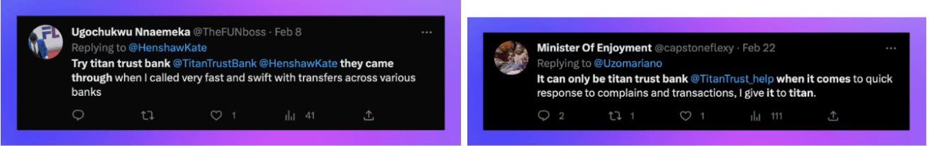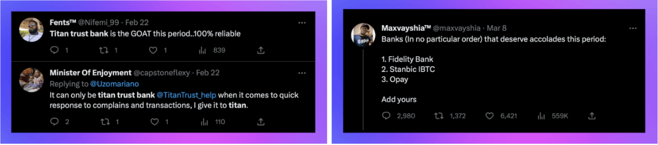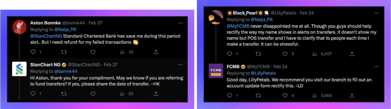 Some banks have established a strong customer service presence on Twitter, allowing customers to easily connect with representatives to address their concerns or issues. Below are some examples: