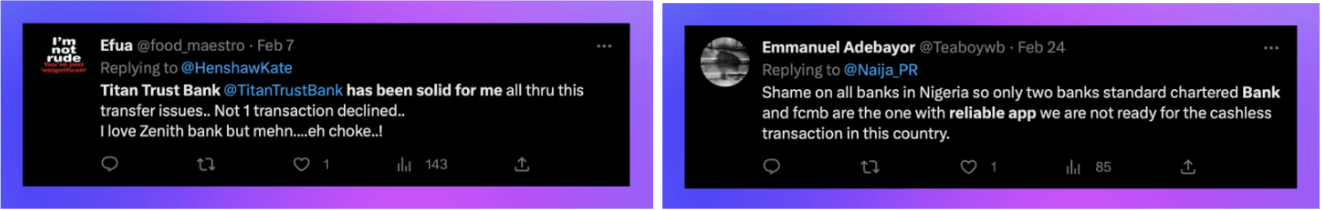 - Which bank’s mobile apps have been reliable - especially during the pre-election period in February 2023