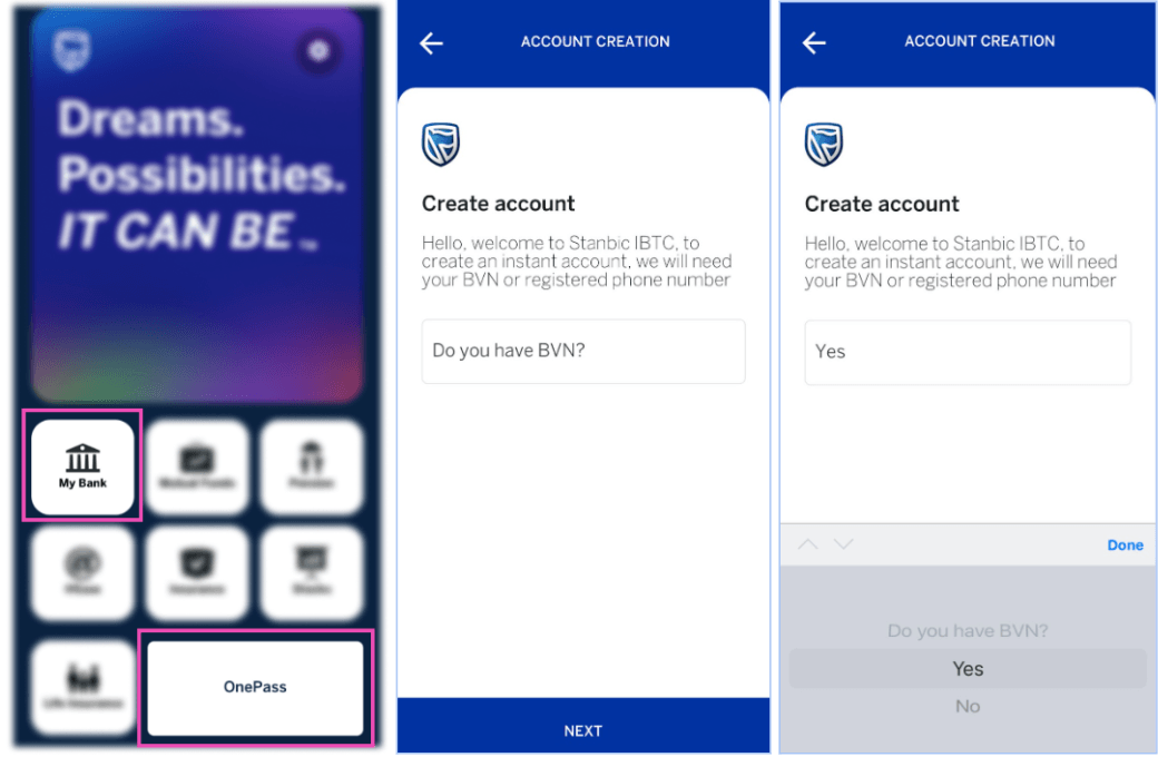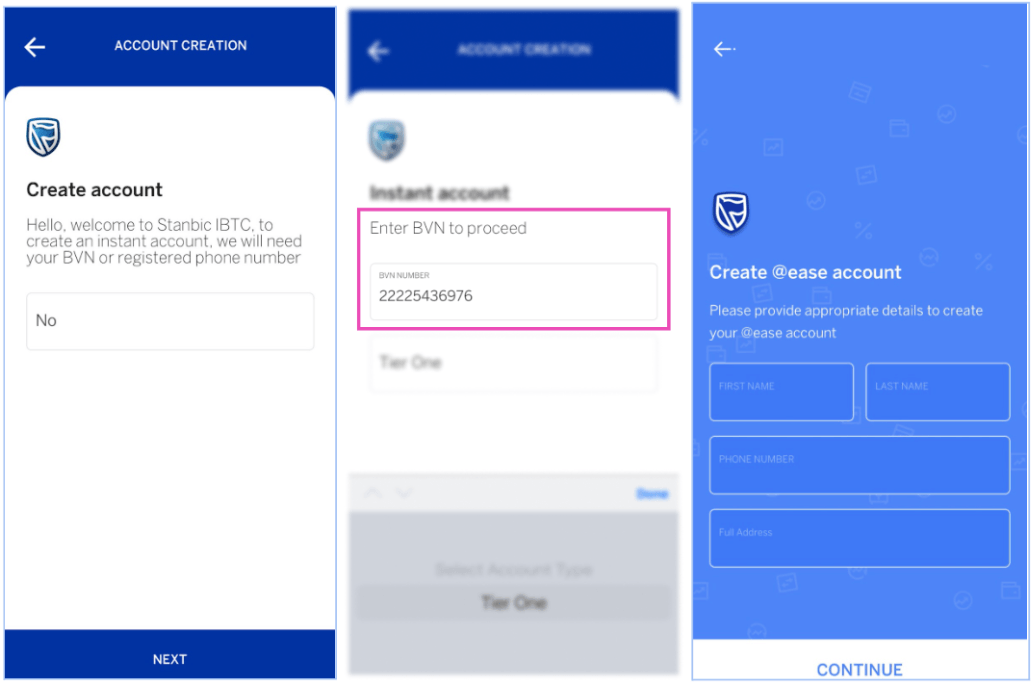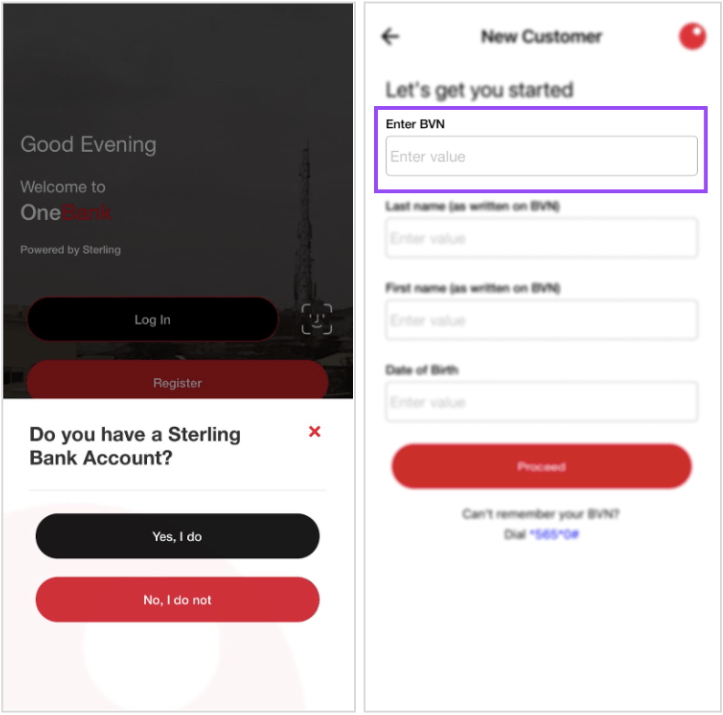 Sterling bank’s mobile app is called “OneBank” and can be easily found on the “App Store” and “Google Play”. It is worth noting how straight to the point the process for finding the “open an account button” was, and BVN was the first requirement for opening the account.