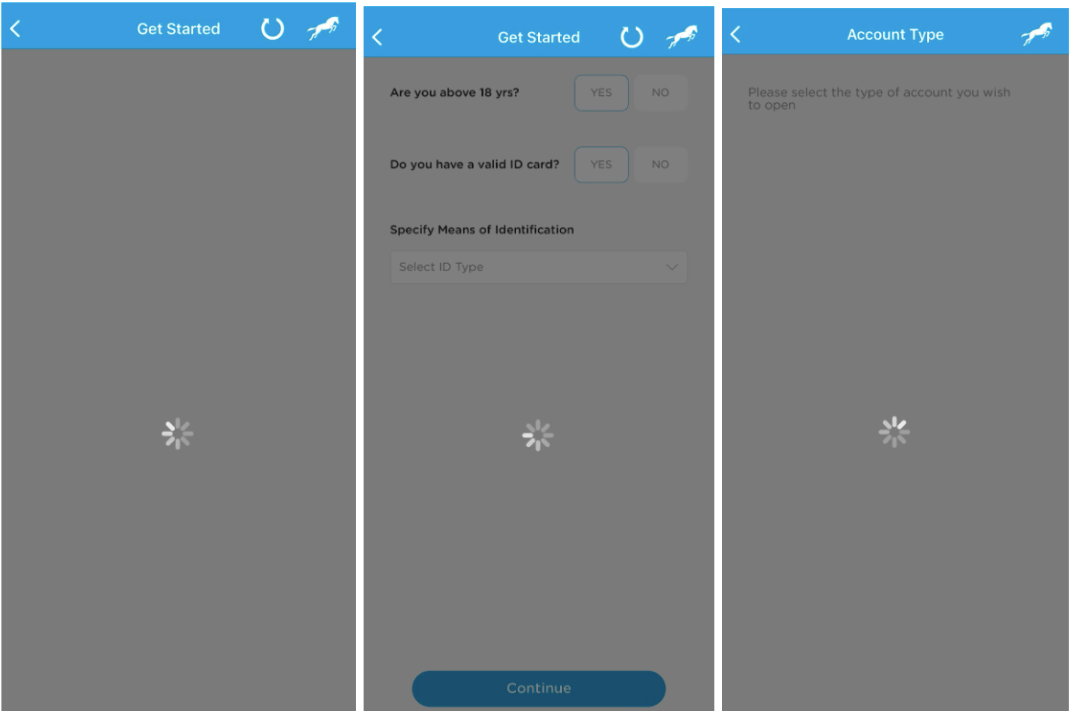 This process seems more like a mobile version of their website, rather than a mobile app - note the privacy policy notification on the fifth screen. Furthermore, the onboarding process for Ecobank is quite long, the customer has created a profile within the first couple of screens without being verified with their BVN, and repeated requests were made for the customer to select the account type they want.